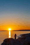 A solitary figure appreciating the sunset on Mackinac Island enjoying the quiet, peaceful solitude.