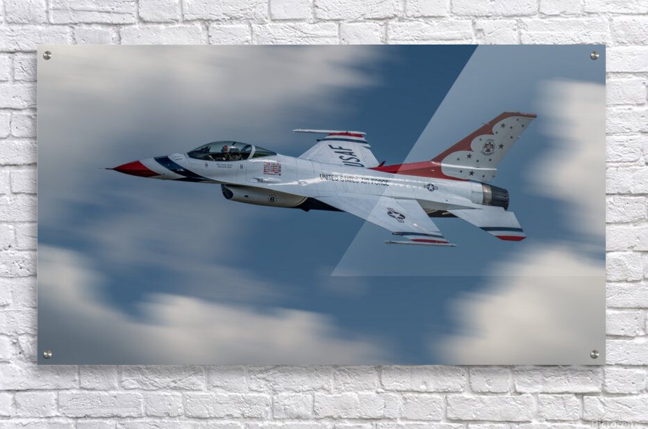 Get this artwork "US Air Force F-16 Falcon - Thunderbirds Opposing Solo tears up the sky" in a framed print.