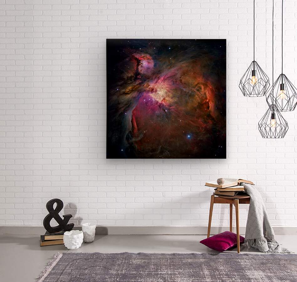 M42 - The Orion Nebula One of the most breathtaking and iconic wonders of the night sky – a vast stellar nursery glowing with ethereal reds, blues, and greens, where new stars are born amid swirling clouds of gas and dust. Located just 1,344 light-years away in the constellation Orion, it's the closest massive star-forming region to Earth and the brightest nebula visible to the naked eye, making it a favorite for stargazers and astrophotographers alike. This stunning fine art print captures the nebula's intricate heart: the glowing Trapezium Cluster of young, hot stars illuminating vast caverns of hydrogen gas, delicate dust lanes, and protoplanetary disks where future solar systems are taking shape. Rendered in exquisite detail from professional deep-sky imaging.