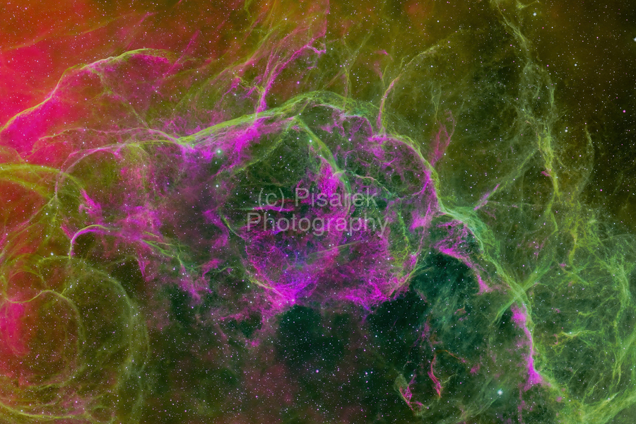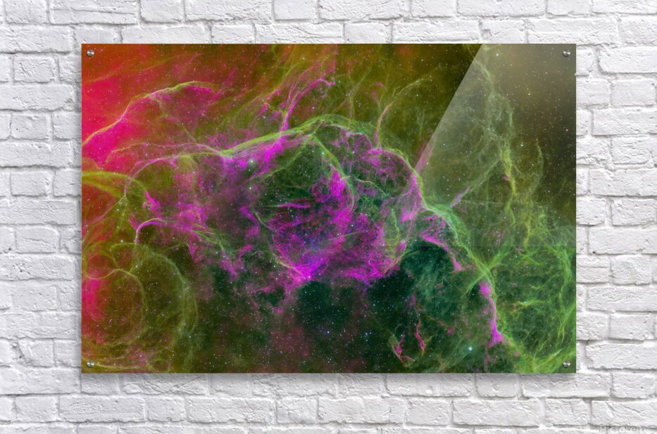 This breathtaking fine art print captures the intricate, ghostly beauty of the Vela Supernova Remnant—the expanding aftermath of a massive star that exploded approximately 11,000 years ago, located about 800–900 light-years away in the southern constellation Vela. Imaged under pristine Bortle 1 skies in New South Wales, Australia, this extraordinary astrophotograph reveals delicate, web-like filaments of glowing gas in vivid magenta-pink, hot pink, and emerald green hues, with intricate tendrils and cavernous structures weaving through an infinite starry field. The striking magenta and pink clouds—dominated by ionized hydrogen—contrast dramatically against deep green oxygen filaments, creating a cosmic tapestry that evokes ethereal veils, interstellar storms, or a blooming celestial flower frozen in time. Countless distant stars sparkle across the scene, adding depth and wonder to this large-scale remnant. This image showcases exceptional detail and vibrant narrowband color from one of the closest and most studied supernova remnants, including the faint glow of its associated pulsar wind nebula and filamentary structures. Perfect for astronomy lovers, it transforms any space into a window to deep space—bringing awe, tranquility, and the raw energy of stellar cataclysm to modern homes, offices, observatories, or science-themed interiors. Ideal for: Deep-sky astrophotography enthusiasts Fans of supernova remnants and cosmic history Those seeking bold, colorful, large-scale statement art Available in premium archival metal, canvas, acrylic, or fine art paper prints—each museum-quality, fade-resistant, and designed to inspire for generations.