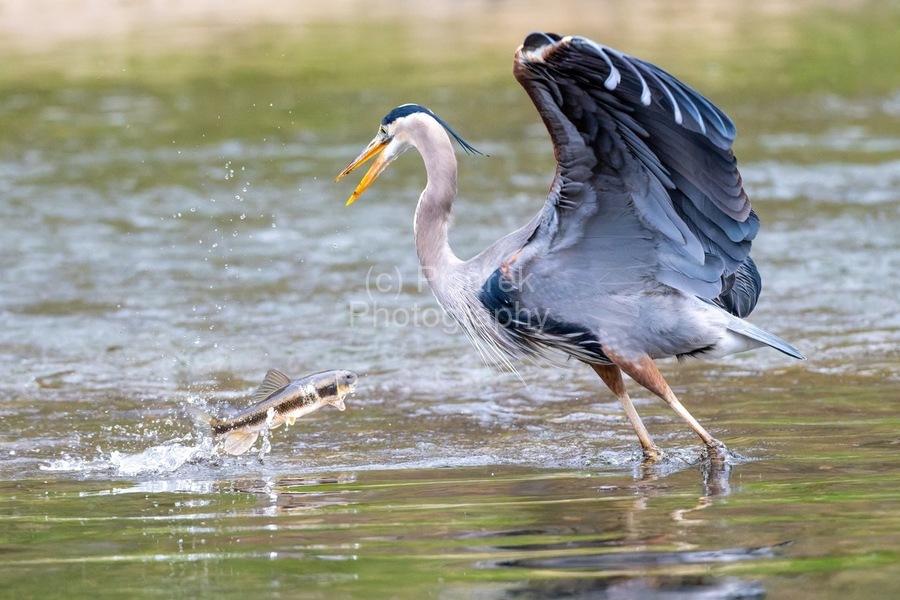 A fish declines a Great Blue Heron's invitation to breakfast.
