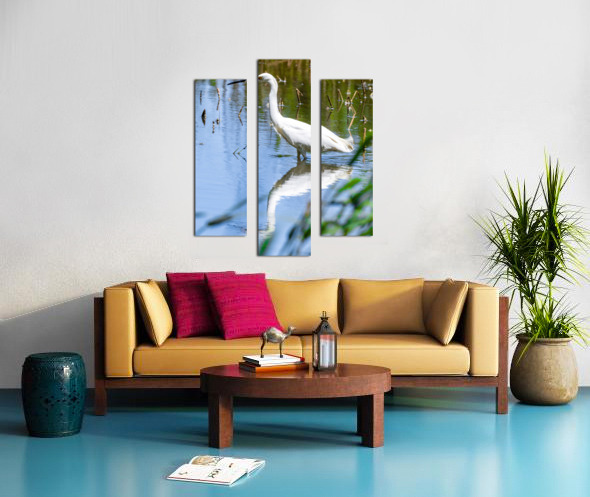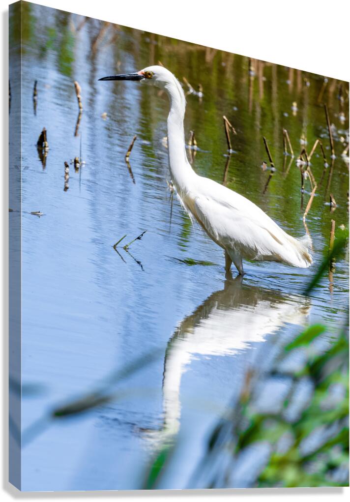 Snowy Egret Wading near the Shoreline of a Lake Canvas print