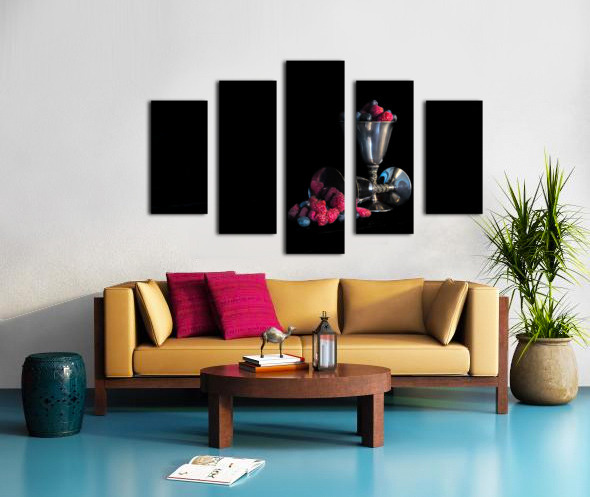 Raspberries and Blueberries in Silver Goblets Canvas print