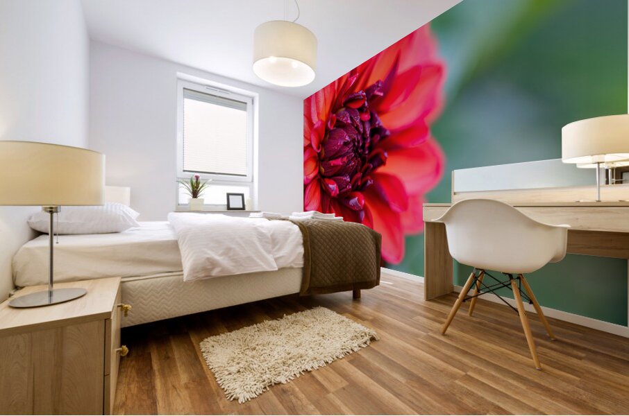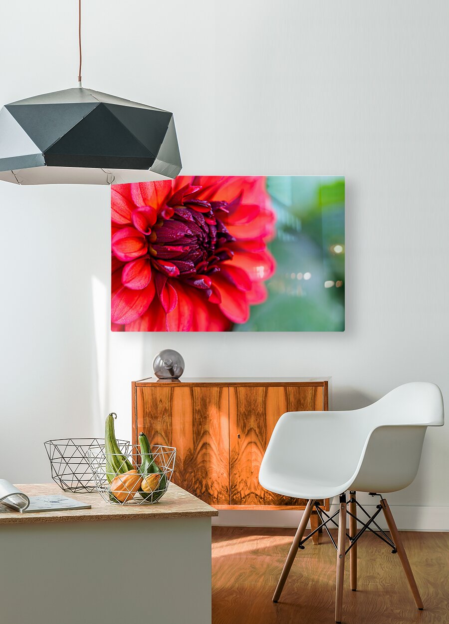 ABOUT THIS ARTWORK: VIBRANT SCARLET AND MAGENTA DAHLIA