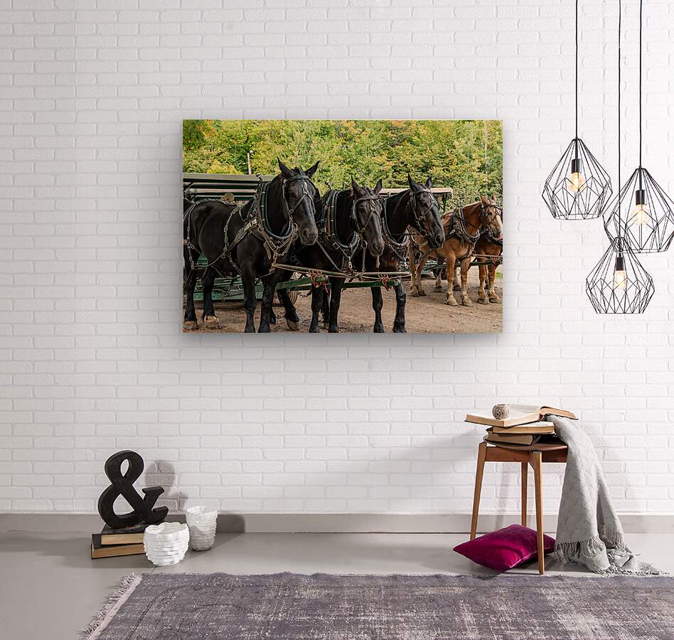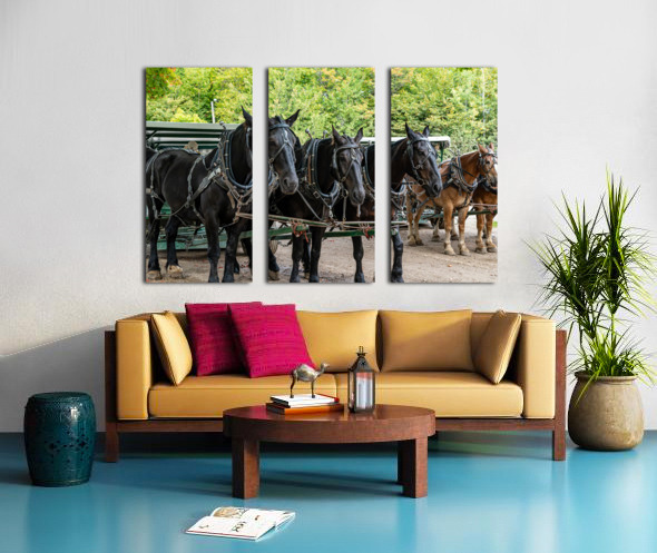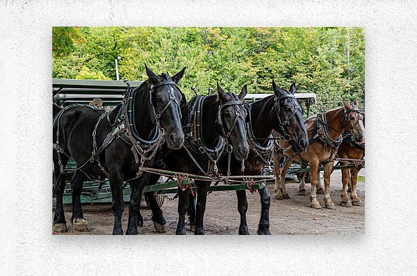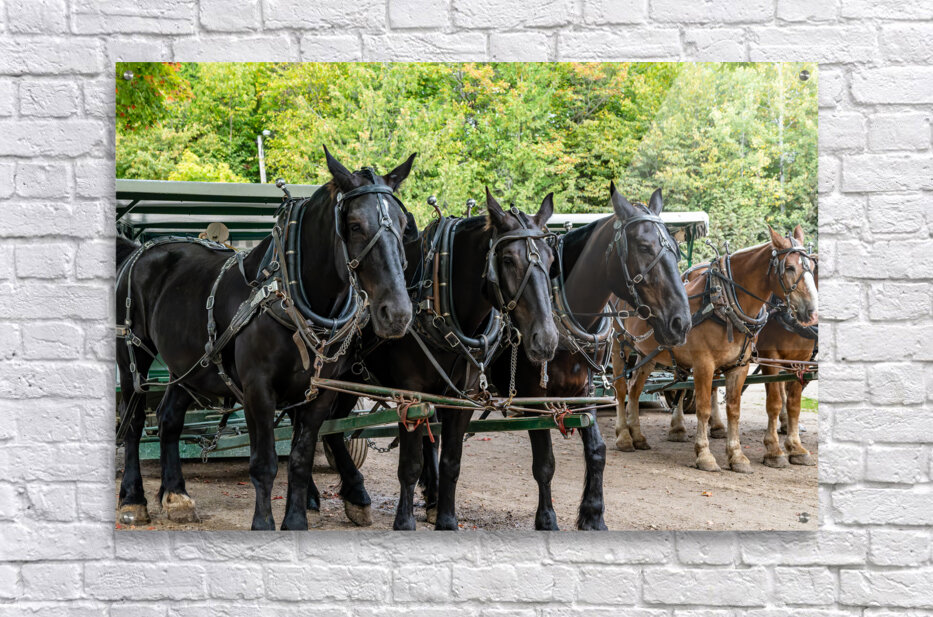 Teams of horses waiting to take tourists around beautiful Mackinac Island, Michigan.