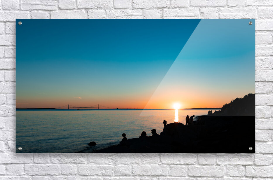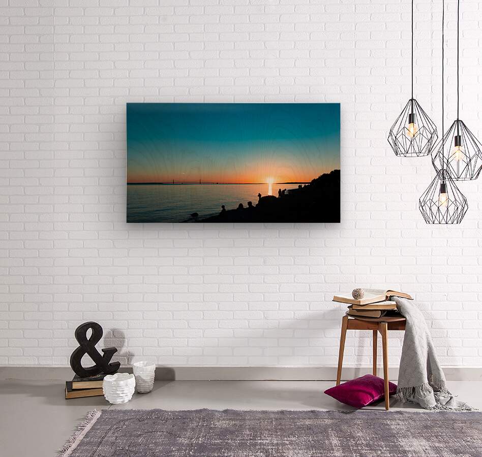 Sunset and the Mackinac Bridge  Wood print