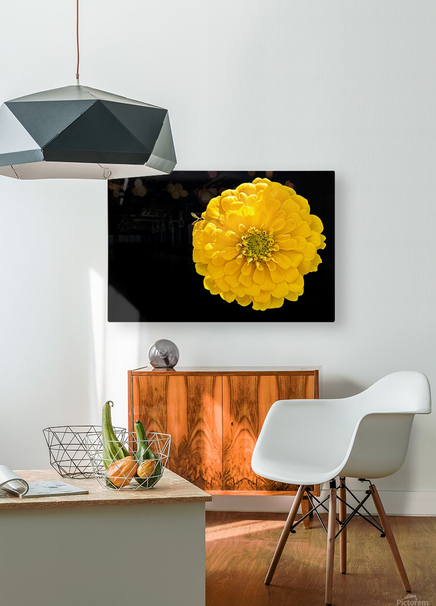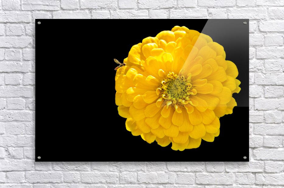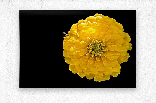 ABOUT THIS ARTWORK: YELLOW ZINNIA AND A HOVERFLY