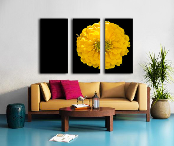 Yellow Zinnia and a Hoverfly Canvas print