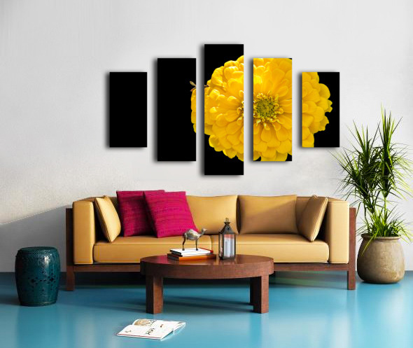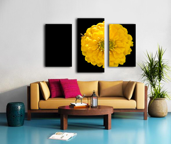 Yellow Zinnia and a Hoverfly Canvas print