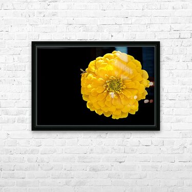 Yellow Zinnia and a Hoverfly Frame print