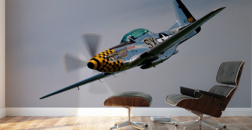 The North American Aviation P-51 Mustang "Little Witch" entering a dive.