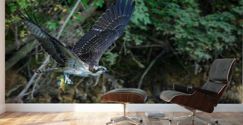 An Osprey, after a successful dive, flies off with its catch to enjoy fresh fish for breakfast.