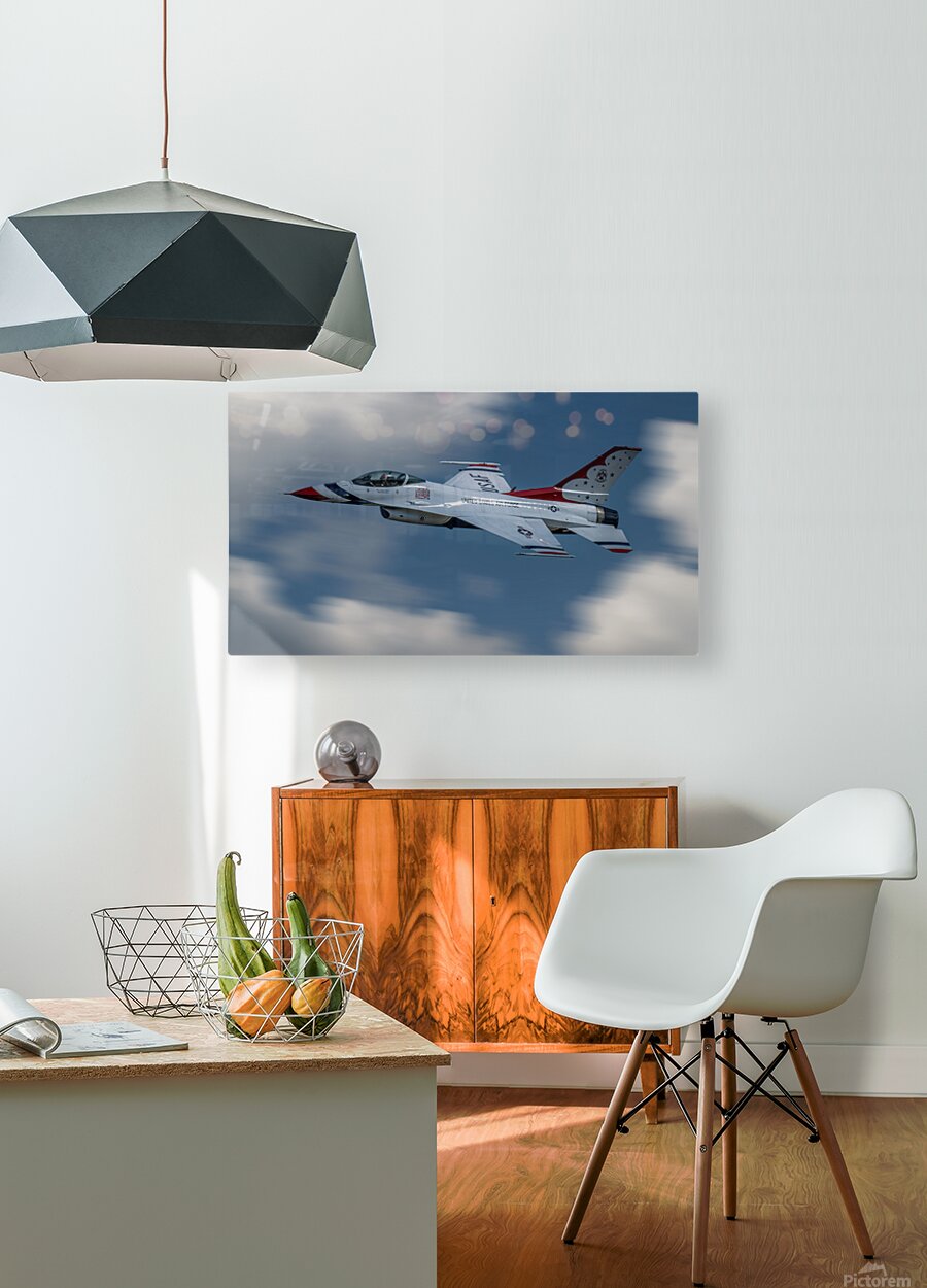 Get this artwork "US Air Force F-16 Falcon - Thunderbirds Opposing Solo tears up the sky" in a framed print.