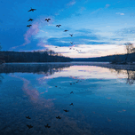 As I was taking this picture of a sunrise with Geese flying over, I said, "Thank You God for another beautiful day." As soon as I finished saying that a Sparrow came and landed on my camera, stayed for a few seconds and flew off.