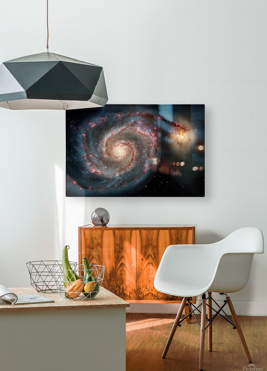 Immerse yourself in the breathtaking beauty of Messier 51, the iconic Whirlpool Galaxy, captured in stunning high-resolution detail. This grand-design spiral galaxy, located 31 million light-years away in the constellation Canes Venatici, reveals its majestic winding arms like a grand cosmic staircase sweeping through the void of space. The vibrant spiral arms glow with the brilliant blues of hot, young star clusters, vivid pinks and reds from active star-forming regions bursting with new life, and delicate lanes of dark cosmic dust threading through the structure like intricate veins. At the heart lies a bright, golden core of older stars, while the galaxy's smaller companion, NGC 5195, tugs gravitationally at one arm, creating a dramatic bridge of gas and light in this eternal celestial interaction. This print showcases the Whirlpool's intricate details: sparkling star clusters, glowing hydrogen clouds, and the subtle interplay of light and shadow that make M51 one of the most photographed and admired galaxies in the universe. Printed on premium archival paper or canvas with fade-resistant inks, it transforms any room into a portal to deep space—ideal for astronomy enthusiasts, modern home decor, or as a thoughtful gift for stargazers.