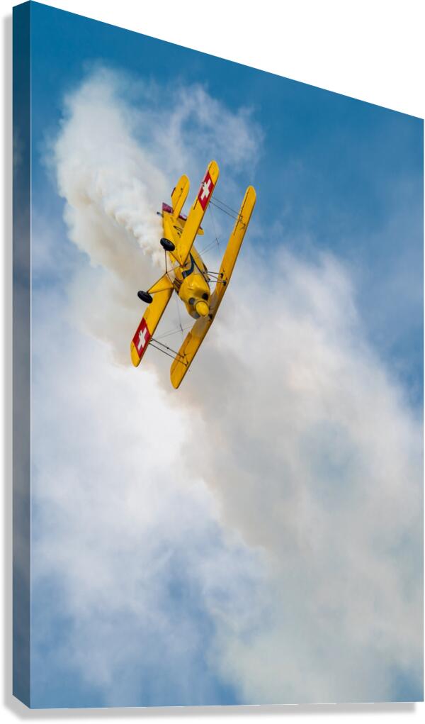 Renowned aerobatic pilot Jerry Wells commands his vibrant yellow Bücker Bü 133 Jungmeister through a flawless maneuver, trailing dramatic white smoke against a brilliant blue sky. The classic biplane, marked with bold Swiss crosses, captures the pure exhilaration and grace of aerobatic flight in this dynamic shot. A timeless tribute to the legendary Jungmeister and the pilots who keep its spirit alive. Perfect for aviation lovers and anyone inspired by the freedom of the skies. Premium archival prints • Multiple sizes • Limited edition Let “Freedom” bring the thrill of flight to your wall.