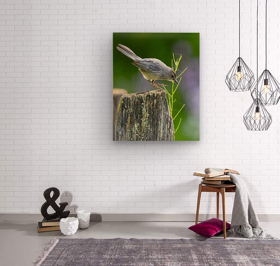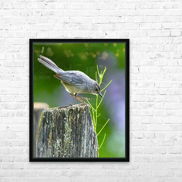 Get this artwork "Cat Bird on a Post" in a framed print.